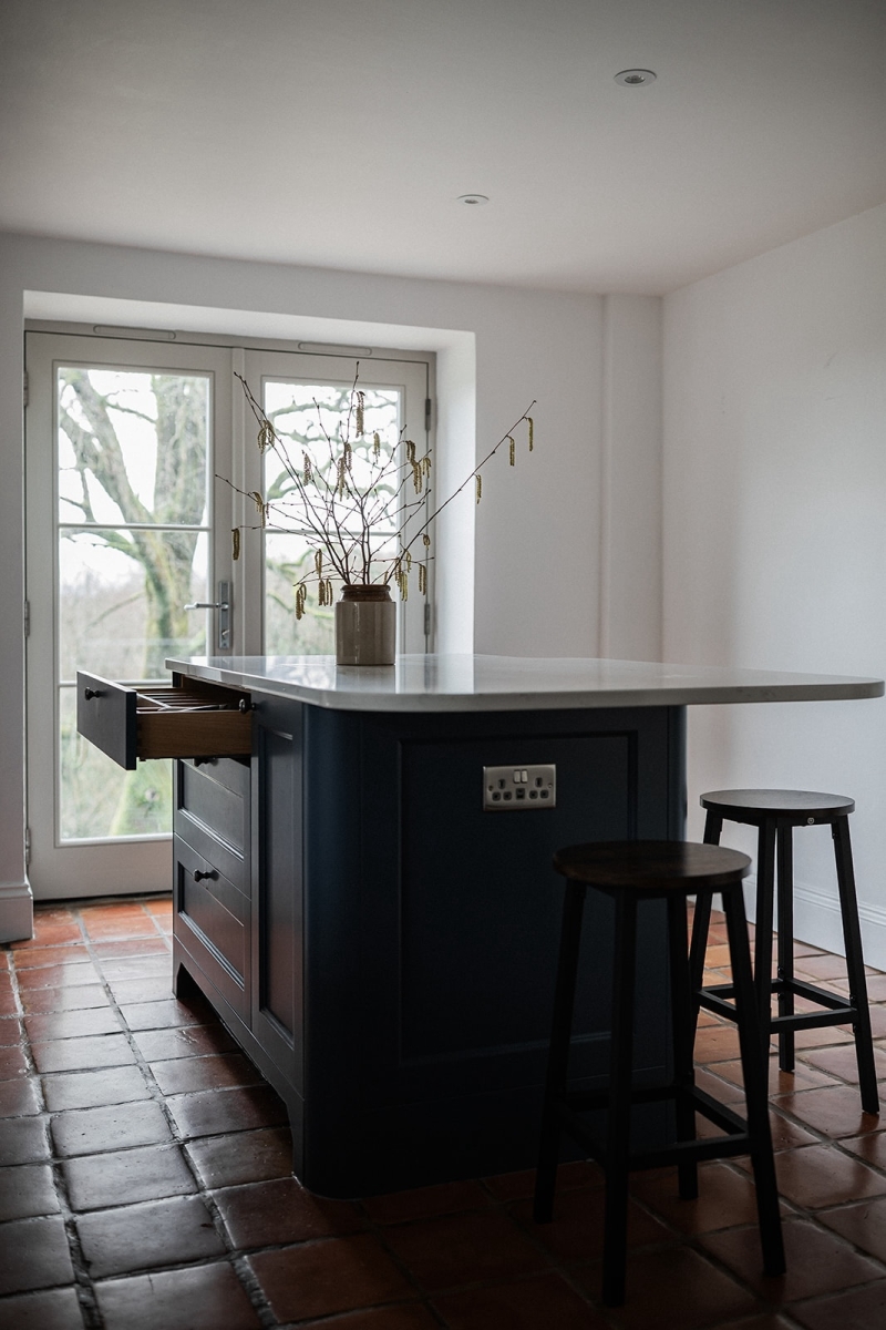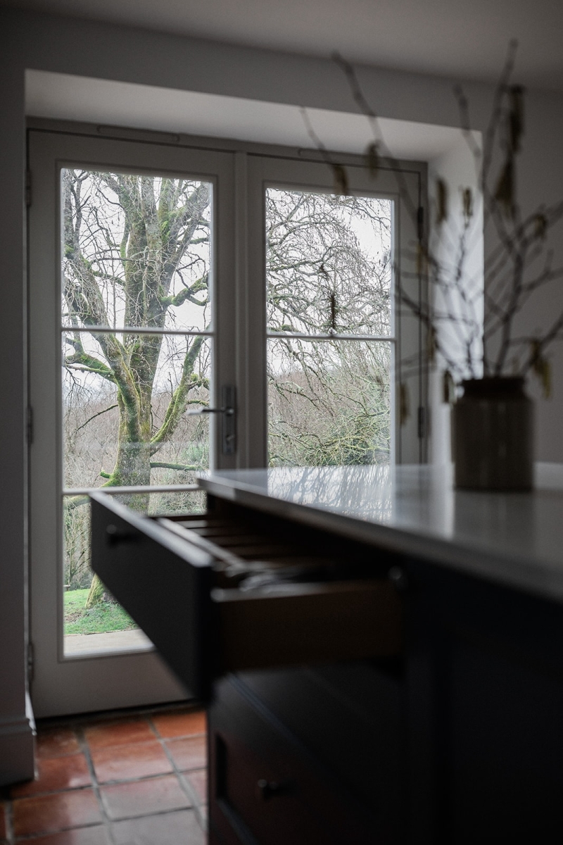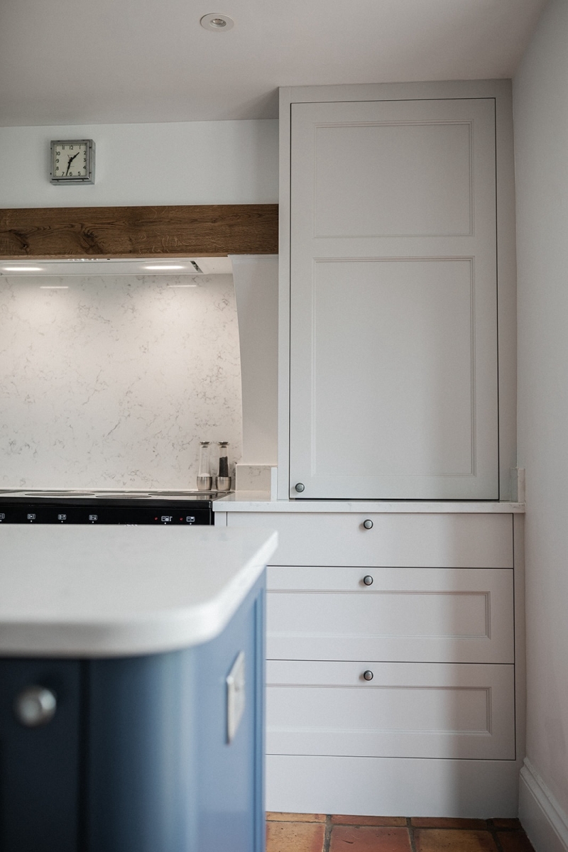 One of the biggest changes was rethinking how the room functioned day to day. We removed the range cooker and secondary oven, replacing them with a single oven solution that better suited the family’s cooking style and freed up valuable space. The introduction of a multifunctional island unlocked the design. With built in seating, generous storage and ample worktop space, it replaced the dining table and created a sociable and hardworking centre to the home. It is now where meals are prepared, homework is tackled and the family comes together.
