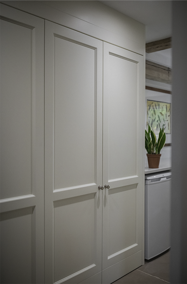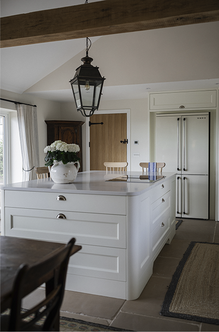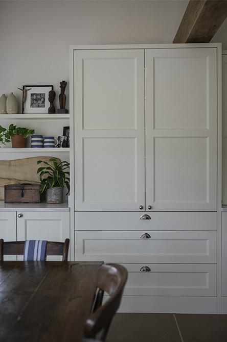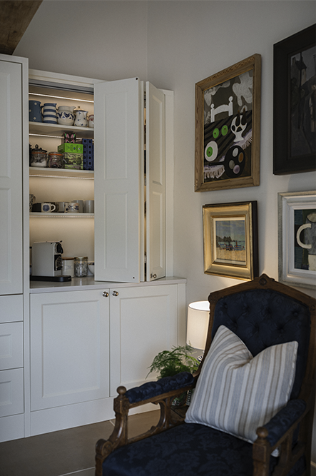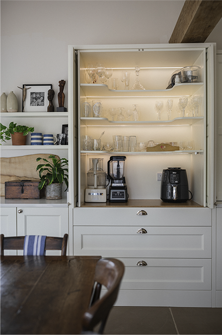 The cabinetry was designed in a sympathetic style with one of William's signature features, incorporating clever folding cabinets to hide small appliances to ensure clutter-free worktops without compromising on easy access.