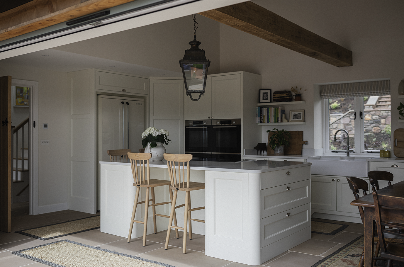 William, our Sales Director, suggested relocating the kitchen to a larger, lighter part of the barn to take full advantage of the spectacular views across to the Brecon Beacons. He worked through several alternative layouts, enabling Jo and Michael to explore different possibilities before settling on the perfect solution. William, our Sales Director, suggested relocating the kitchen to a larger, lighter part of the barn to take full advantage of the spectacular views across to the Brecon Beacons. He worked through several alternative layouts, enabling Jo and Michael to explore different possibilities before settling on the perfect solution.