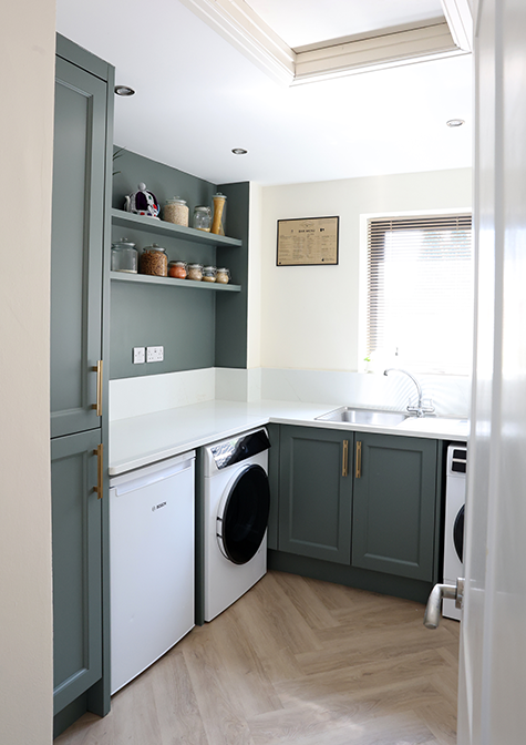 A key feature for our client was a bespoke mantle above the stove, a task other kitchen companies were unwilling to take on. Here at Cymru Kitchens, we embraced the challenge of crafting a solution that not only honoured her vision but made it the focal point of the room.